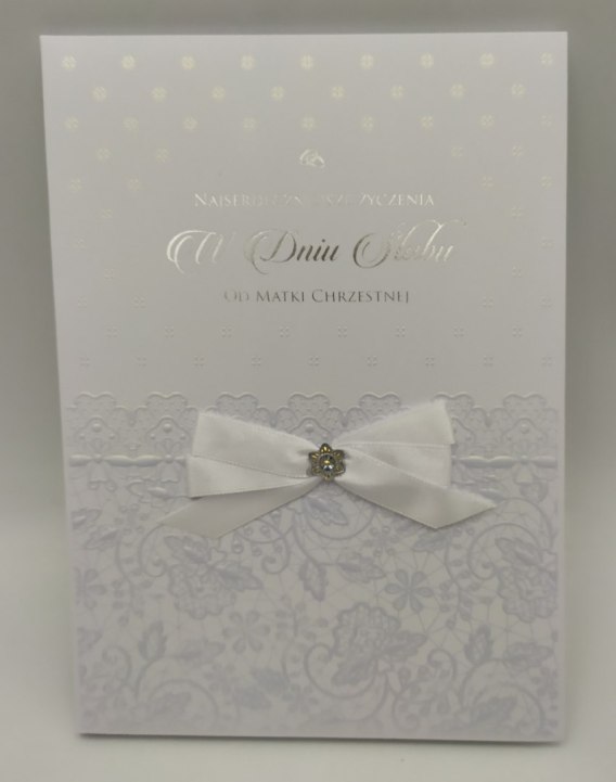 książeczka, miejsce na podpis i życzenia, papier ozdobny, satynowa kokardka, tłoczenie, złocenie, złocenie holograficzne |