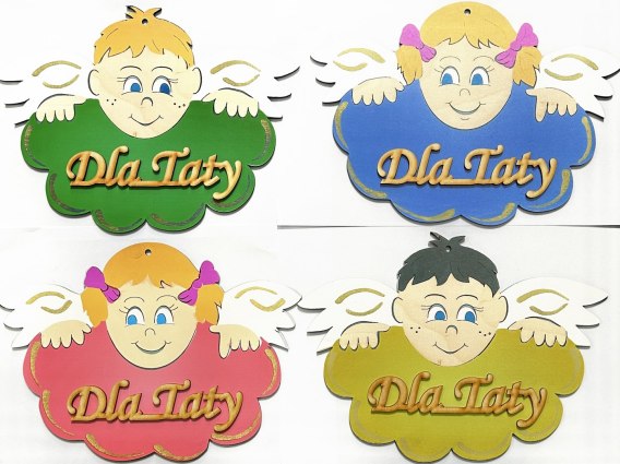 Zawieszka w kształcie aniołka na chmurce z dedykacją, aniołek chłopczyk w wielu wzorach do wyboru. Kolor dobierany losowo.