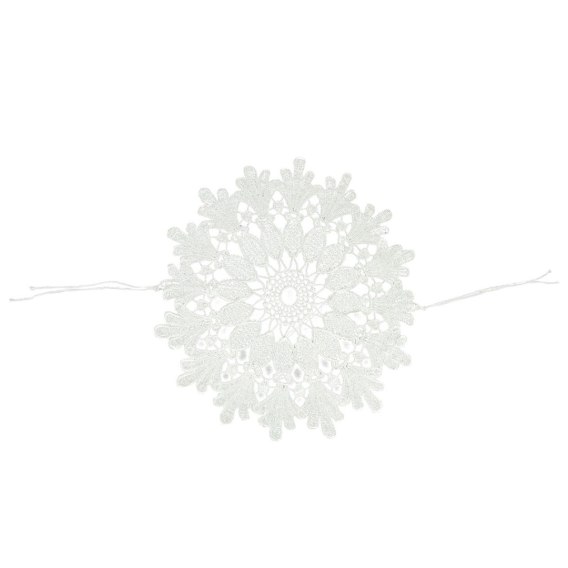 Okrągła ażurowa serweta o średnicy 38 cm to elegancki i praktyczny element wielkanocnej dekoracji. Dzięki tasiemkom do wiązania serweta doskonale przylega do koszyczka, zapobiegając jej przesuwaniu się lub spadaniu. Wysokiej jakości ażurowy wzór podkreśla wyjątkowość świątecznego koszyczka, nadając mu subtelny i tradycyjny charakter.
