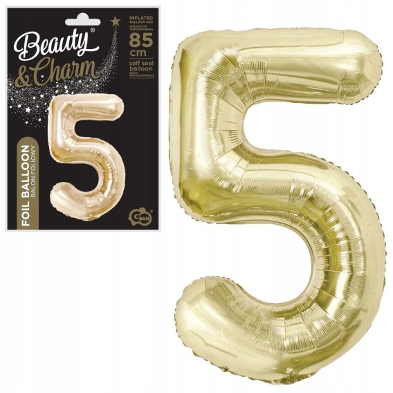 Balon foliowy B&C cyfra 5 szampański 85 cm CH-B8H5