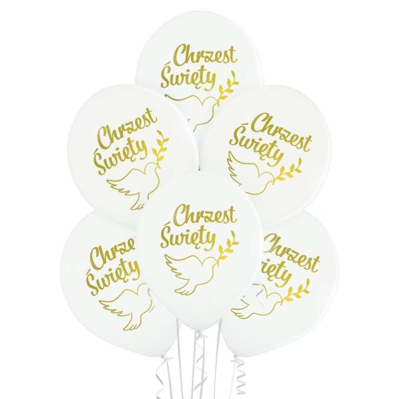 Balony 30cm Chrzest Św. białe 6szt.