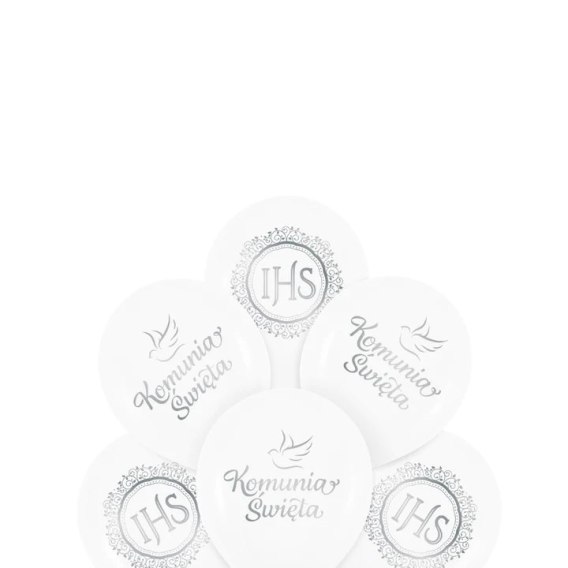 Balony komunijne biodegradowalne biało-srebrne 12cali 6szt. 132180