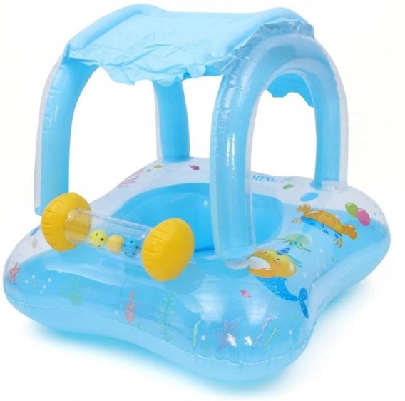 Pontonik dla dzieci z daszkiem i otworami na nóżki wykonany z wysokiej jakości tworzywa PCV gwarantującego wytrzymałość