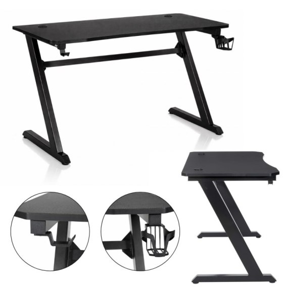 Biurko gamingowe, komputerowe z uchwytami na słuchawki, wodę 120 x 60 x 75 cm czarne STL25CZ
