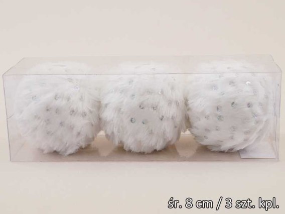 Bombki 3szt BIAŁE WŁOCHATE TG42588