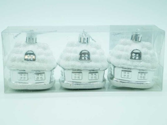 Bombki domki zawieszki plastikowe 3szt. BIAŁE TG57144-1