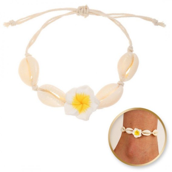 Bransoletka 2w1 na stopę i rękę, na sznurku, MUSZELKI i KWIAT HAWAJSKI B542ZO