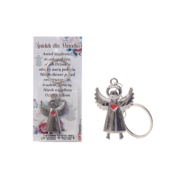 • Breloczek do kluczy w ozdobnym opakowaniu - aniołek z serduszkiem "Aniołek dla Dziadka"