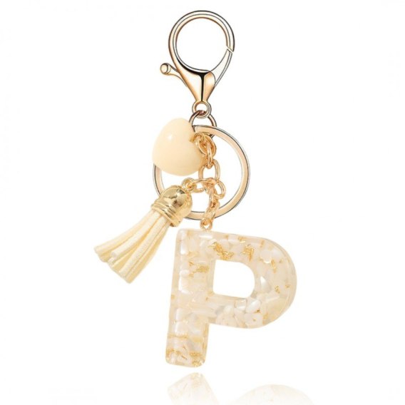 Brelok do kluczy LITERKA "P" biało złote kamyczki z sercem BRL329P