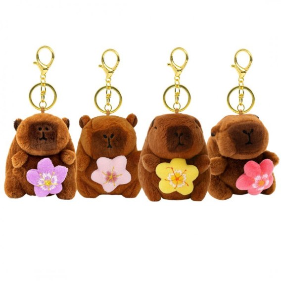 Brelok do kluczy pluszowa puchata Kapibara z obrotowym kwiatkiem, LOSOWY KOLOR BRL385