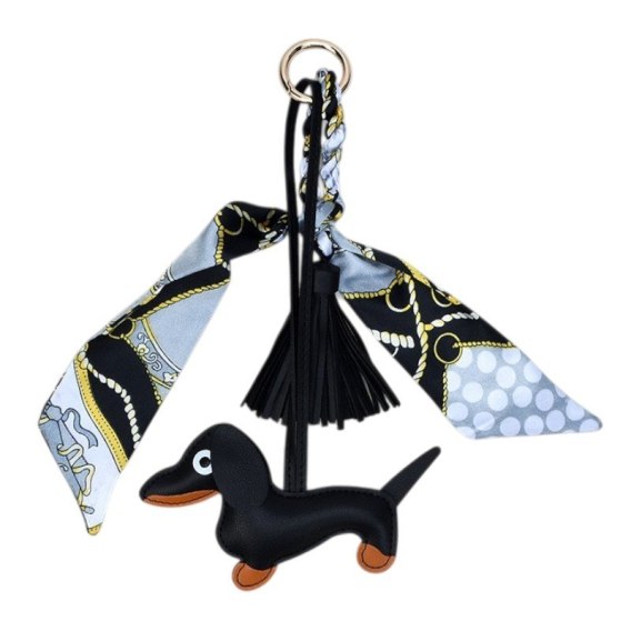 Brelok do kluczy skórzany JAMNIK czarny z frędzlami BRL374CZ