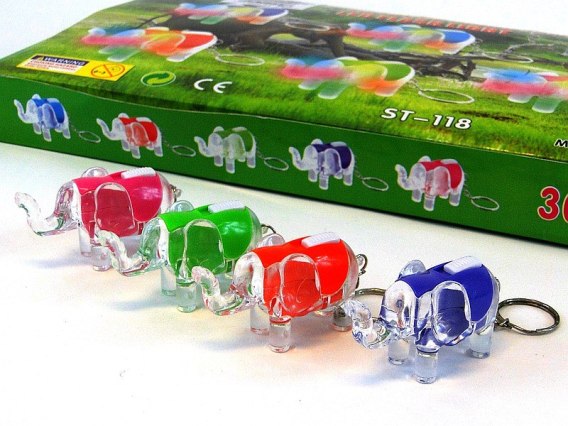 Brelok świecący 6x4cm ze światłem 10szt. SŁOŃ
