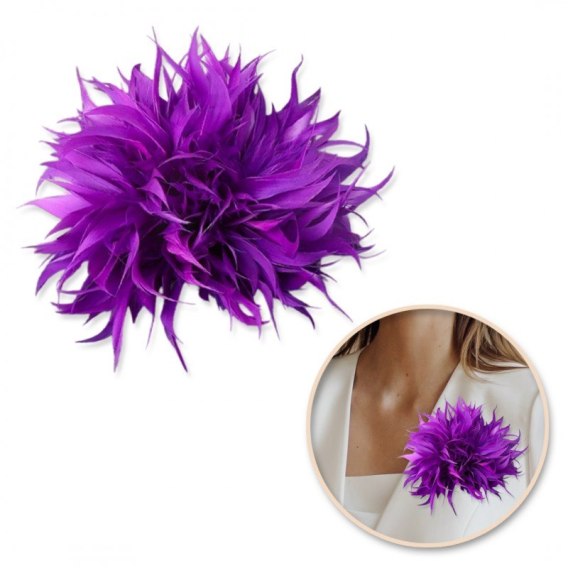 Broszka ozdobna, spinka do włosów 2w1 pióra fiolet BZ207FIO