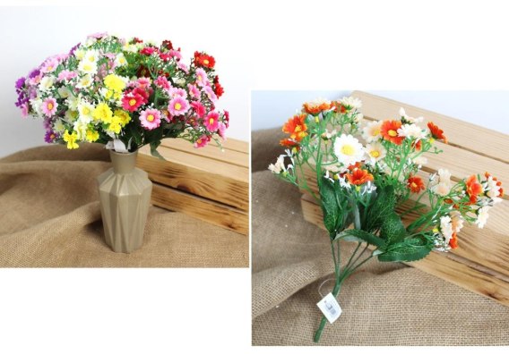Bukiet 2szt sztuczny drobne stokrotki z białym dodatkiem 27 cm 5 łodyg mix kolor MZ-099
