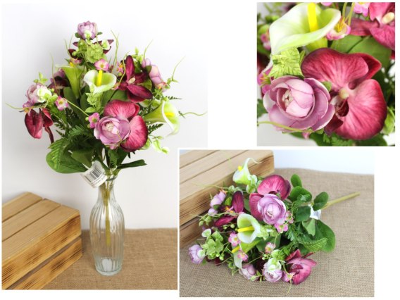 Bukiet mieszany STORCZYK, PIWONIA, KALIA wys. 45 cm, 9 łodyg (15 kwiatów 10-5 cm) RÓŻOWY ciemny, cieniowany MZ-311C