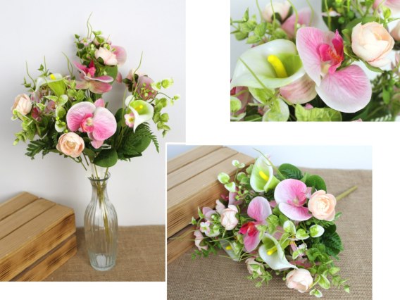 Bukiet mieszany STORCZYK, PIWONIA, KALIA wys. 45 cm, 9 łodyg (15 kwiatów 10-5 cm) RÓŻOWY jasny, cieniowany MZ-311B