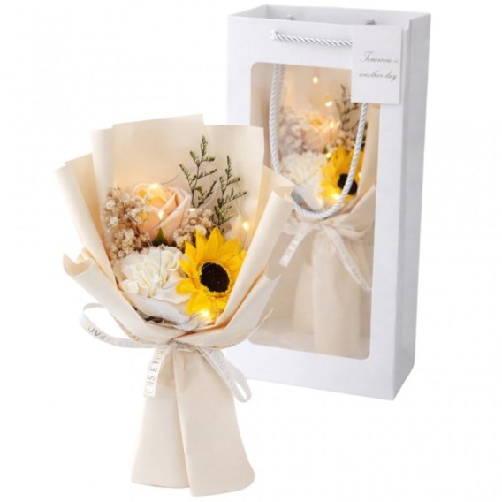 Bukiet zapachowych kwiatów mydlanych w pudełku na prezent, świecące LED BUK17ZO