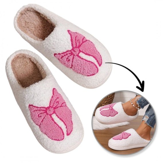 Ciepłe kapcie z kokardą ocieplane, antypoślizgowe PAN03R38, rozmiar 38