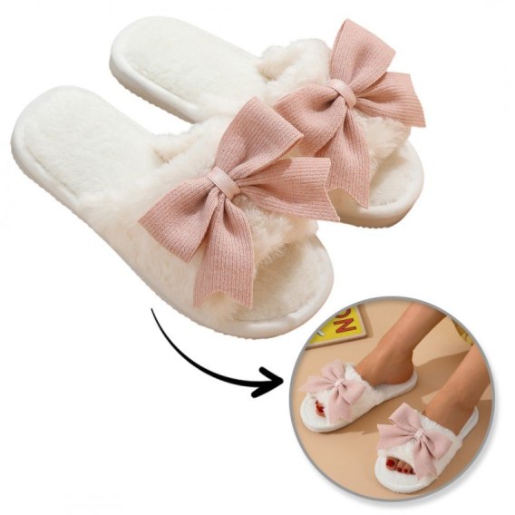 Ciepłe kapcie z kokardą ocieplane, antypoślizgowe PAN06R39, rozmiar 39