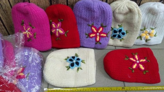 Czapka 12szt wełniana z kwiatkiem 110504024
