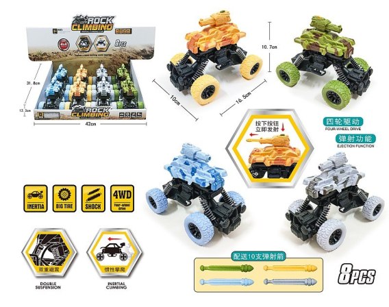 Czołg monster 16,5x11x10cm, napęd na 4 koła, display 8 szt.