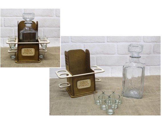 Dekoracja drewniana KONFESJONAŁ + szklana karafka i 6 kieliszków IN00038