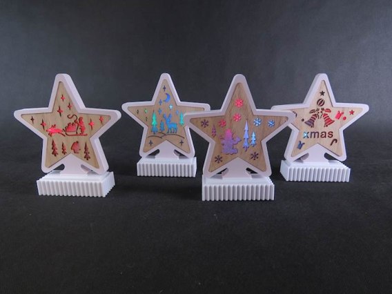 Dekoracja drewniana gwiazda led wys. 19cm | 483851