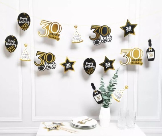 Baner urodzinowy na 30 urodziny w kolorze czarno-złotym.