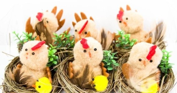 Dekoracja wielkanocna 6szt. kurczaki w gniazdkach 5480 Wie-0252