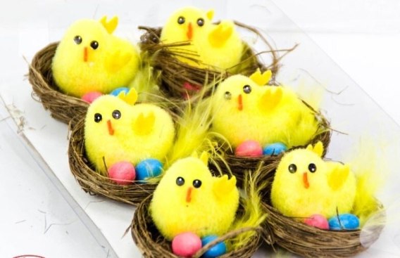 Dekoracja wielkanocna 6szt. kurczaki w koszyku 5428 Wie-0246