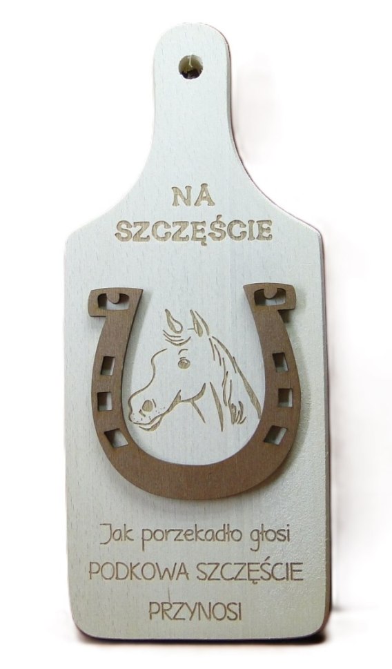 Deska "Podkowa na szczęście" jest wykonana z drewna bukowego i sprawdza się jako śmieszny dodatek do prezentu na różnych imprezach.