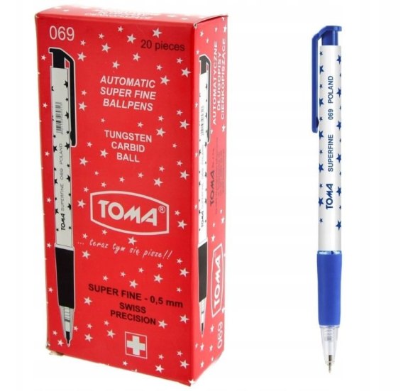 Długopis Toma w gwiazdki automatyczny niebieski 20 Sztuk TO-069