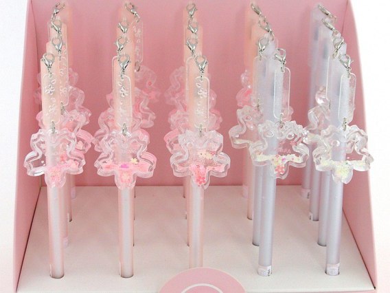 Długopis z zawieszką - kwiatek z płynnym brokatem, niebieski 20szt.