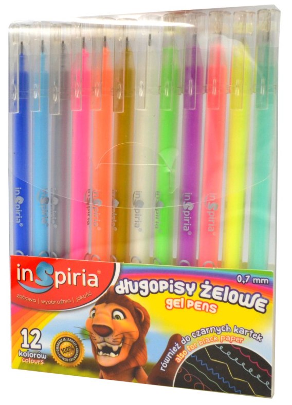 Długopisy żelowe 12 kolorów INSPIRIA