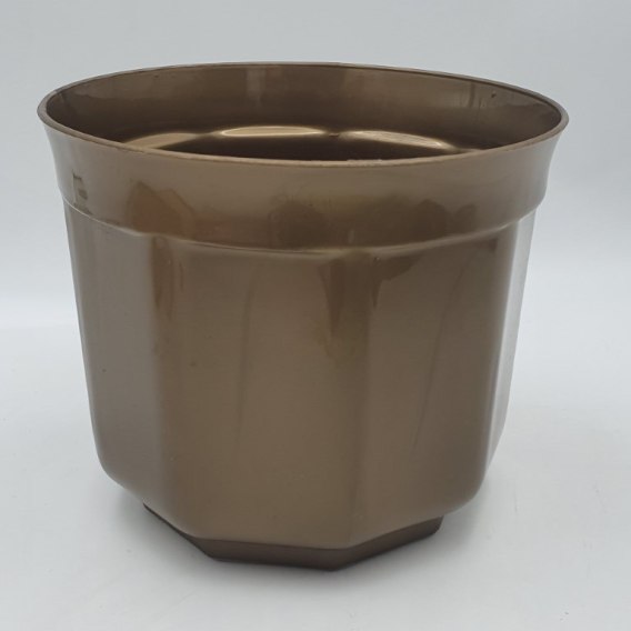 Doniczka w kolorze złotym wykonana z tworzywa sztucznego imitującego ceramikę. Doskonale dopasuje się do każdego wnętrza.