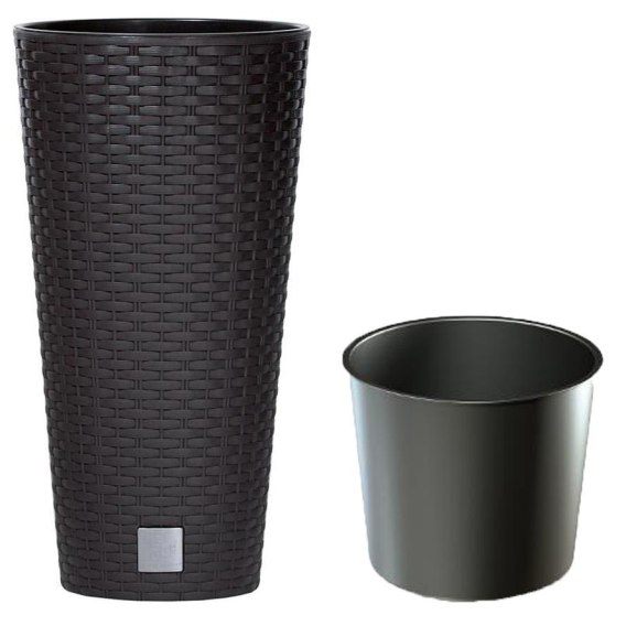 Wysoka donica plastikowa wykonana na wzór rattanu