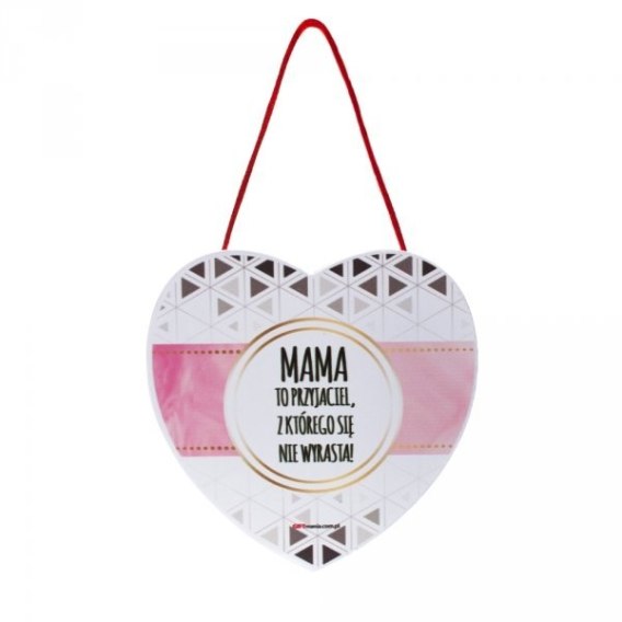 Drewniana tabliczka serce wzbogacona lakierem UV z napisem "Mama to przyjaciel..."
