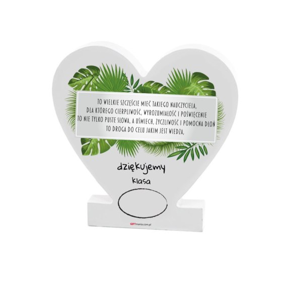 Drewniana tabliczka serce z podstawką wzbogacona lakierem UV z napisem "To wielkie szczęście mieć..."