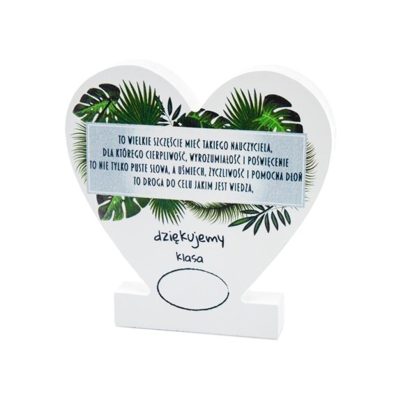 • Drewniana tabliczka serce z podstawką " To wielkie szczęście mieć takiego nauczyciela"