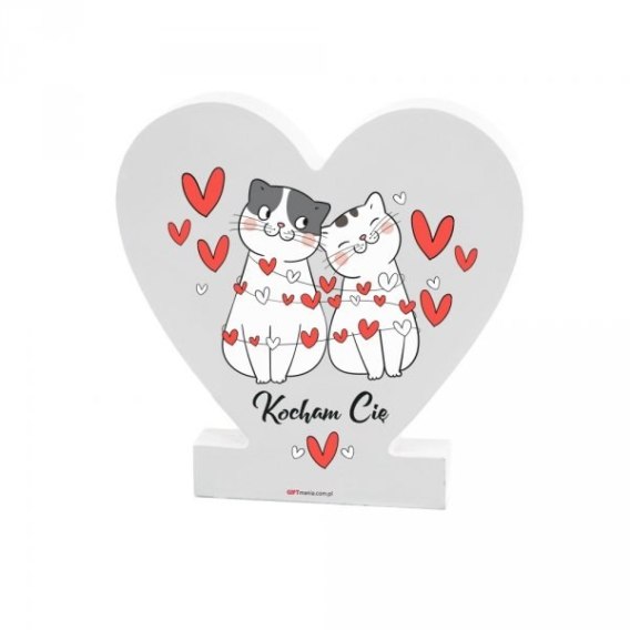 Drewniana tabliczka serce z podstawką wzbogacona lakierem UV z napisem "Kocham Cię"