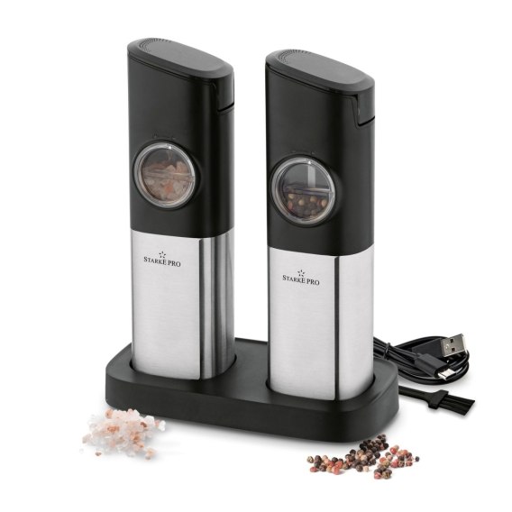 Dwa młynki grawitacyjne z akumulatorem - komplet młynków do przypraw Starke Pro Magna 2 sztuki