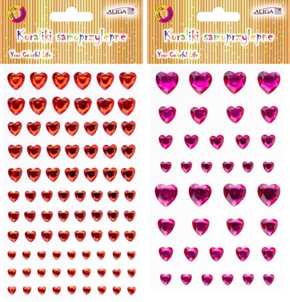 Dżety, kryształki samoprzylepne w kształcie serca.