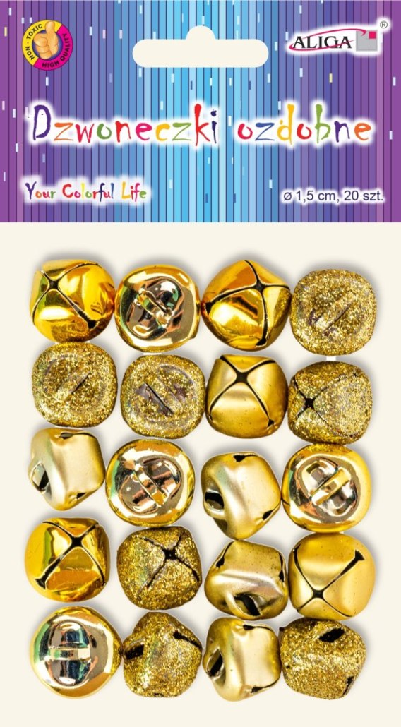Dzwoneczki ozdobne złote, 1,5 cm. op. 20 szt.