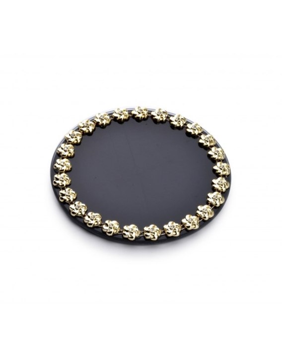 Podstawka dekoracyjna wykonana z lustra i elementów ozdobnych. Świetnie się sprawdzi jako baza do dekoracji stołu. Idealnie nadaje się do trzymania na niej świec. Bogate zdobienia sprawiają, że nada wyrazu każdemu wnętrzu.