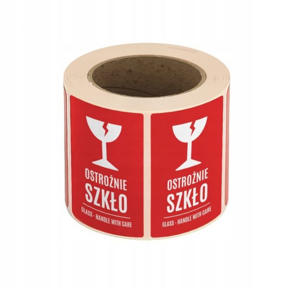 Etykiety ostrzegawcze 500szt. OSTROŻNIE SZKŁO 50×80