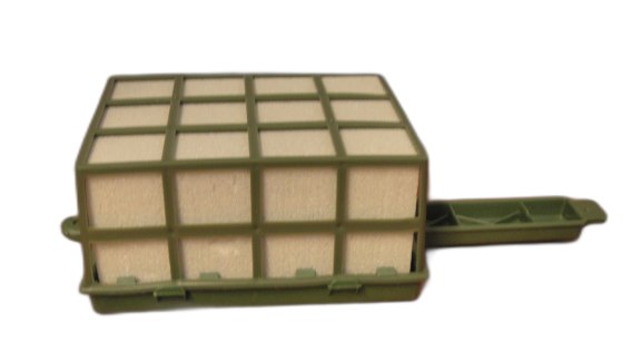 Gąbka, pianka cegła florystyczna do kwiatów zabudowana klatką, stelażem z rączką.