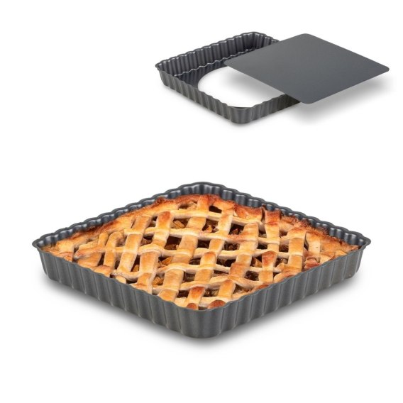 Model ma wyjmowane dno, co usprawni serwowanie. Idealnie nadaje się do tart na słono i słodko. Kwadratowa blaszka do pieczenia tarty pokryta jest też powłoką non-stick, co ułatwi ci jej pielęgnację.