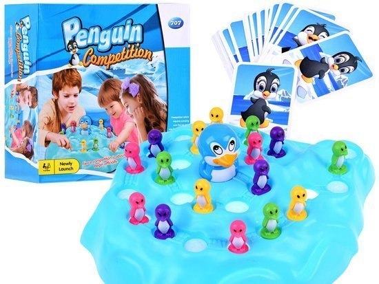 Karty należy ułożyć na stole, po wylosowaniu karty postąpić zgodnie ze wskazówkami (jeśli wylosowałeś pingwinka z jednym krokiem , przesuwasz się o jedno pole, jeśli z dwoma to o dwa pola, a jeśli z trzema to o trzy pola).