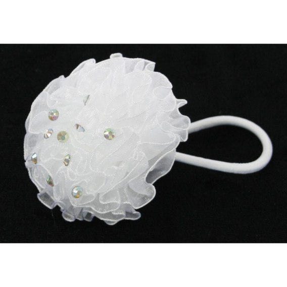 • Gumki do włosów pompon + cyrkonie białe 10szt. G7905
