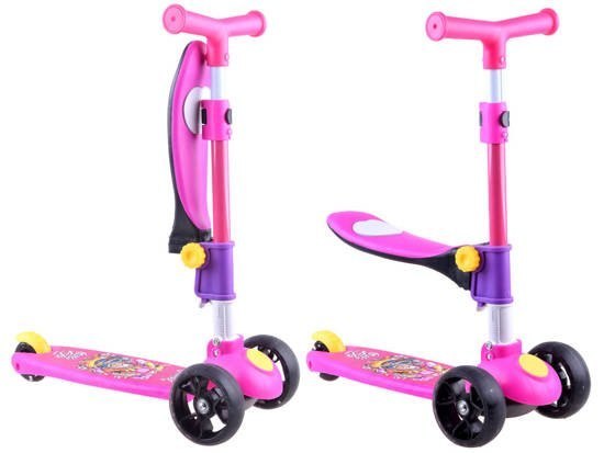 Balansowa trójkołowa hulajnoga ze składanym siodełkiem przeznaczona do nauki i jazdy rekreacyjnej dla najmłodszych dzieci. Lekkość konstrukcji i wykonanie wspomogą rozwój równowagi oraz zapewnią świetną i bezpieczną zabawę na świeżym powietrzu. Hulajnogę można zabrać wszędzie, a w szczególności na długie spacery. Wówczas dziecko jak opadnie z sił może rozłożyć siodełko i wesprzeć swoje ciało na nim. Antypoślizgowy podest oraz kauczukowe, ciche kółka zapewnią jeszcze większą frajdę z jazdy. Hulajnoga posiada szeroką stopę, hamulec tylny dociskowy, przednie koła balansujące. Balansowa hulajnoga sprawi, że jazda będzie jeszcze bardziej przyjemna. Dzięki tej opcji dziecko będzie mogło łagodnie wchodzić w zakręty balansując własnym ciałem! Jazda na tego typu hulajnodze pomoże rozwinąć psychomotorykę dziecka. Będzie również pomocna w rozwoju równowagi i koordynacji ruchowej malucha.